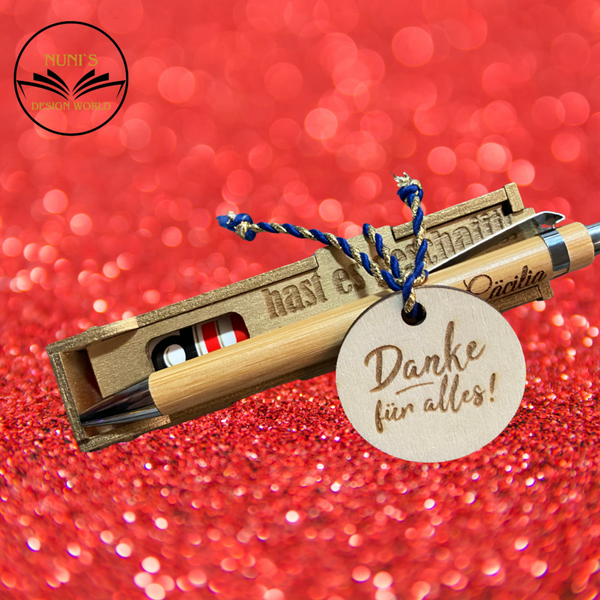 - Holzanhänger mit Gravur: „Danke für alles!“
