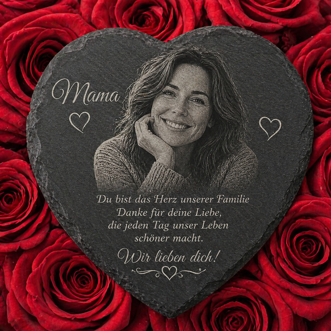 Unsere hochwertige Schieferplatte ist in zwei liebevoll gestalteten Designs erhältlich – perfekt als einzigartiges Geschenk zum Muttertag: